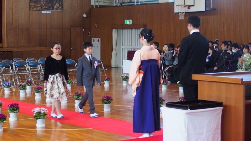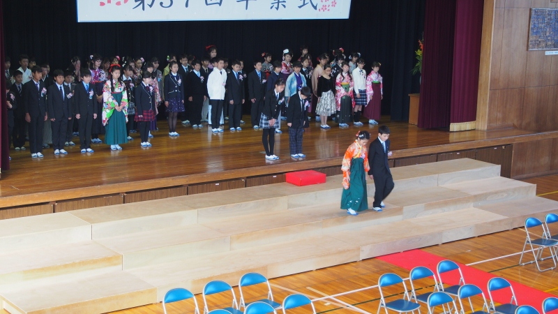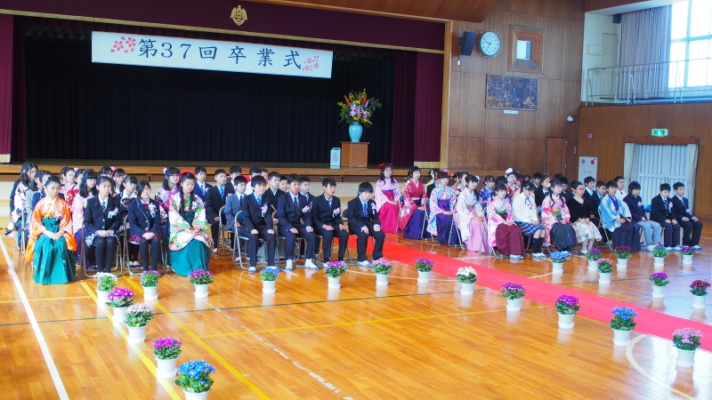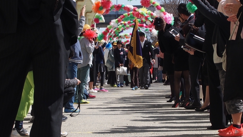 卒業証書を受け取り、76名が卒業しました。気持ちのこもった呼びかけと歌声が会場いっぱいに広がりました。式の最後には、お世話になった家族に、感謝の言葉を添えて花のプレゼント。感動して涙。成長を感じて涙。別れを惜しんで涙・・・のすてきな卒業式になりました。卒業生の皆さんの前途を心よりお祝いします!