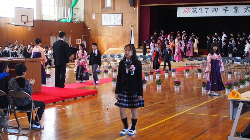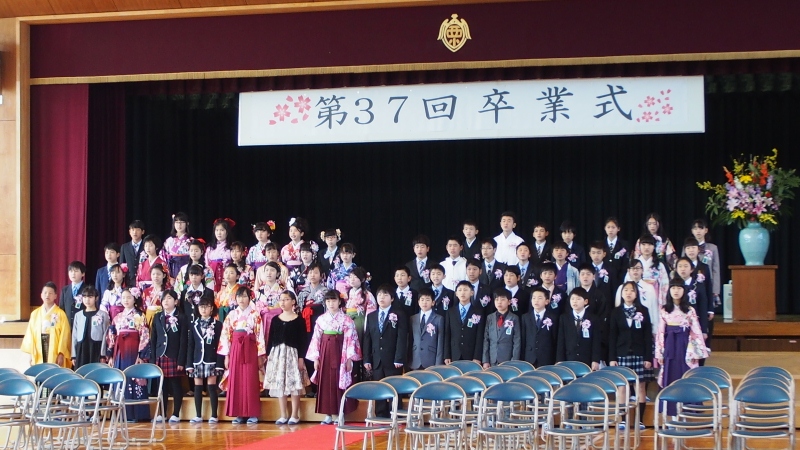 たくさんの御来賓と保護者の皆さんにご出席をいただき、第37回卒業式が行われました。人と人との温かい出会いとふれあいを大切にしてきた6年生61名は、最上級生としての責任をしっかりと果たし、下級生にはやさしい心配りができる立派な姿に成長し、多くの人に祝福されて笑顔で巣立っていきました。自分で方向を定め、時にはブレーキをかけ、時には方向を修正し、自分の信じる道をしっかりとした足取りで進んで行ってくれることを心より願っています。
