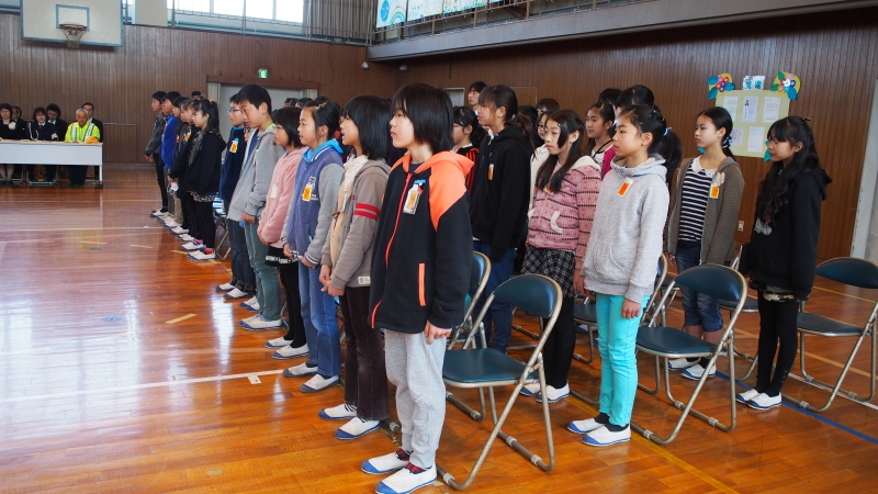 卒業式を前にして、一足先に6年生の修了式を行いました。代表児童が修了証を受け取り、修了式が無事済んだところで、養護教諭から成長の記録のプレゼントがありました。成長の記録カードは、身長が6年間で伸びた分と同じ長さのリボンが結んであり、ほどいてみると、予想以上の長さでびっくり!大きくなったんだね。