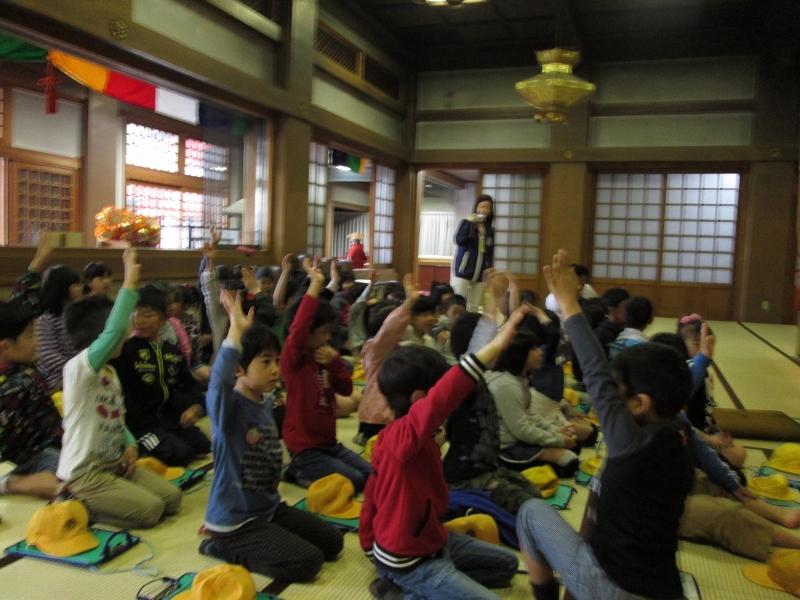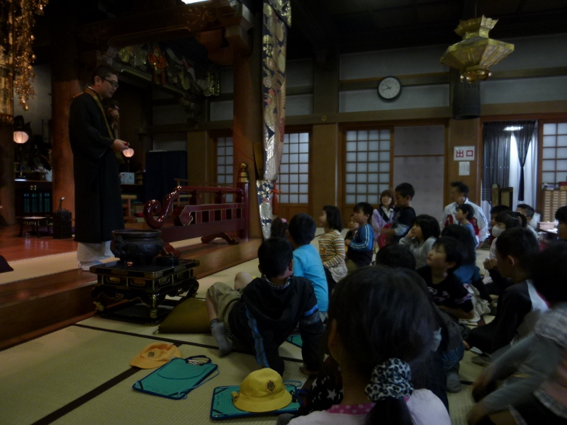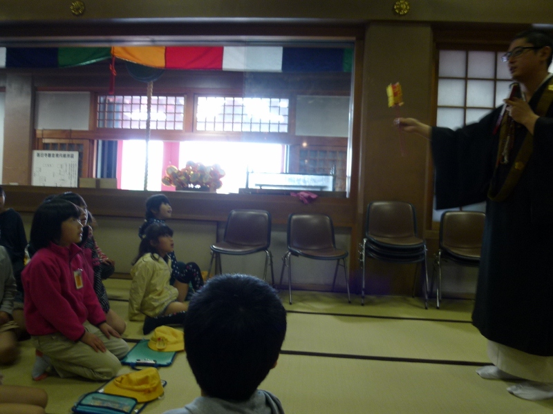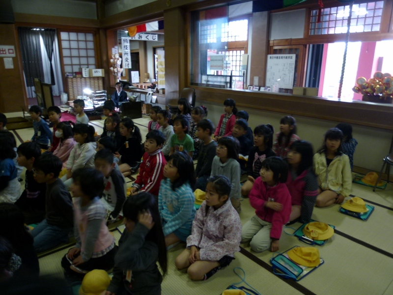 子どもたちは、住職さんから、地元の雄の一人、福島正則と甚目寺観音の関わりも交え、その歴史についてお話を聞きました。その後は、貴重な仏像を見せていただくだけでなく、三重の塔の仲間で見せていただくこともできました。わが故郷の素晴らしさを学んだ子どもたちは、誇らしげな表情で学校へ戻ってきました。