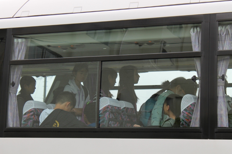 曇り空の中、6年生が元気に修学旅行に出発しました.。グランドがぬかるんでいた関係で、体育館での出発式となりましたが、校長先生からは、「せっかくの機会だから、しっかりと見聞を広めてほしい!」との話がありました。学年主任の先生からは、「感謝の気持ちを大切にするたびにしよう。その思いは、必ず言葉や態度で相手に伝えよう!」という話がありました。その後、元気にバス乗り込み、最初の目的地である宇治の平等院へ向かいました。