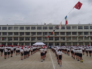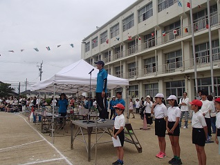 競技も、演技も、応援も、係も、みんなが一生懸命に動いて、積極的に楽しんだ運動会でした。観覧席の保護者の方からも、たくさんの声援をいただきました。中には、職員に労いや感謝の言葉をかけてくださった方もあり、とてもうれしく思いました。