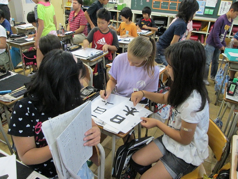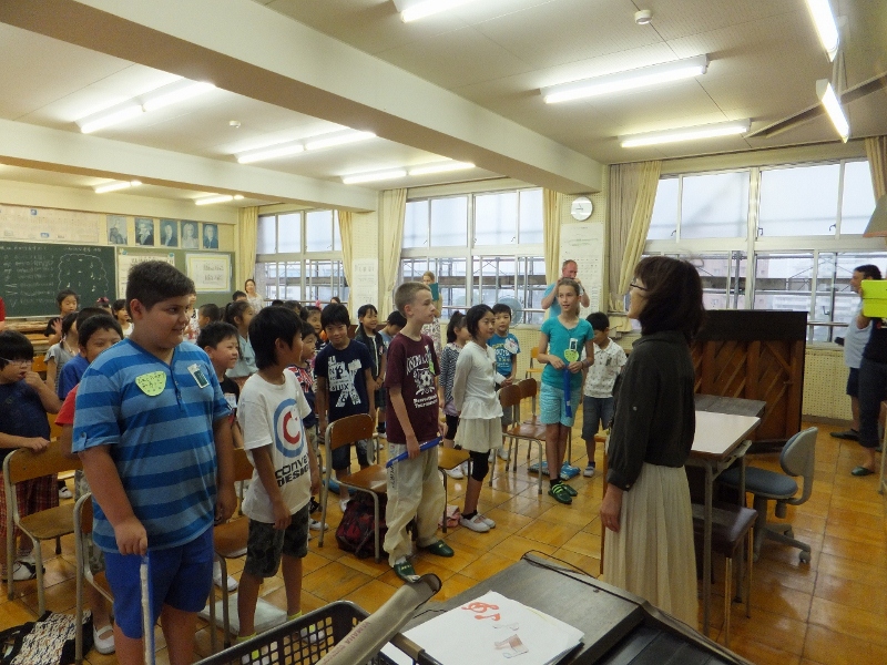 ホームステイ先から通学団登校体験をしたマロニー小学校の子どもたちに、甚西小の授業に参加してもらいました。日本らしさを味わってもらおうと、どの学年、どのクラスの工夫を凝らした授業を計画・準備してきました。