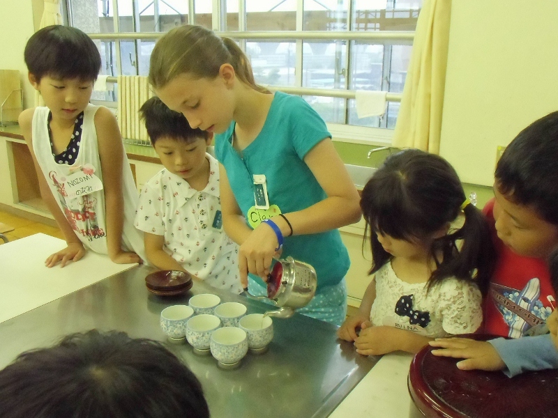 交流も自然に深まって            日本茶をいっしょに入れてみる           フルーツバスケットの英語版