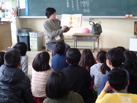 2月13日(木)朝、図書ボランティアさんに絵本の読み聞かせをしていただきました。今回は、3年生とひまわり学級でした。