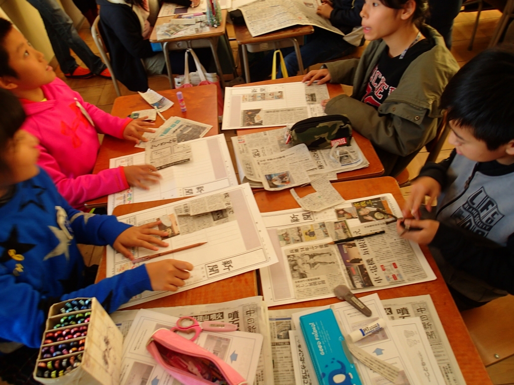 一人一人が、朝刊を読んで興味ある記事を切り抜き、一枚の新聞にまとめました。