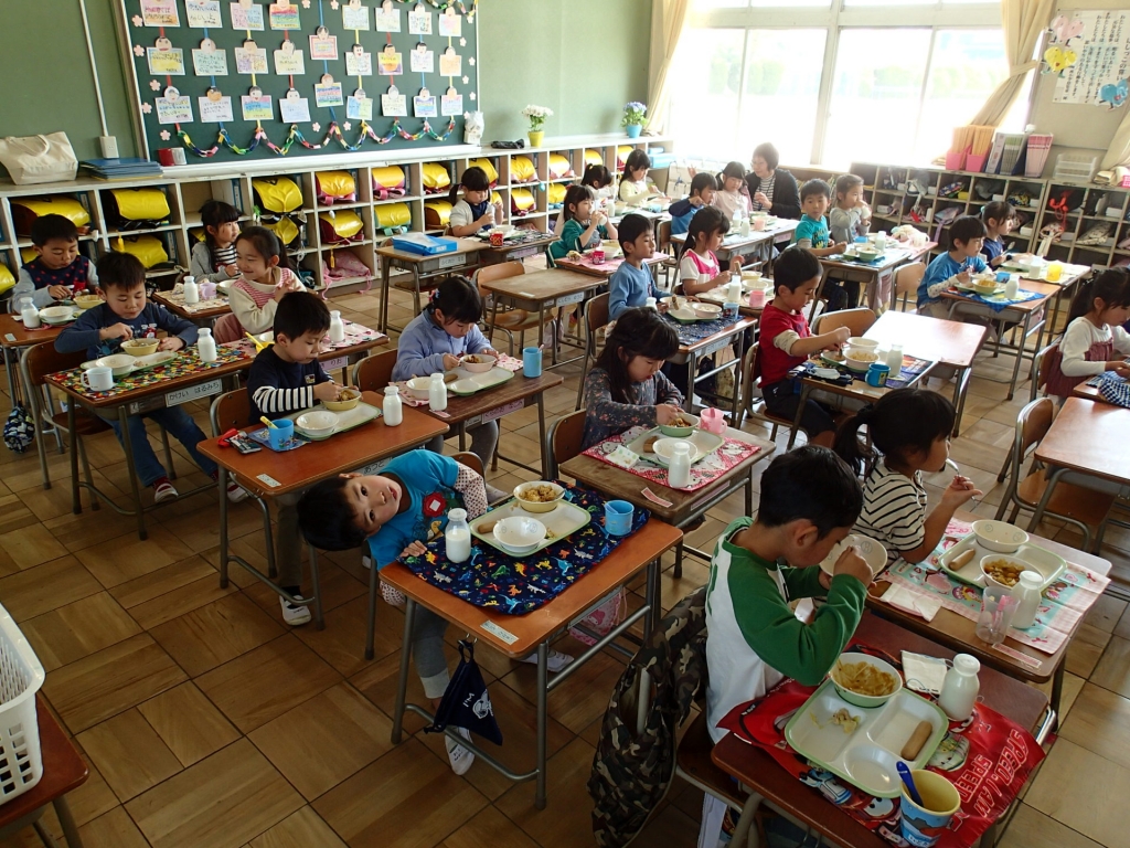 手洗いから「いただきます」、そして後片付け、歯磨きまで、やり方を確認しながら進めていました。