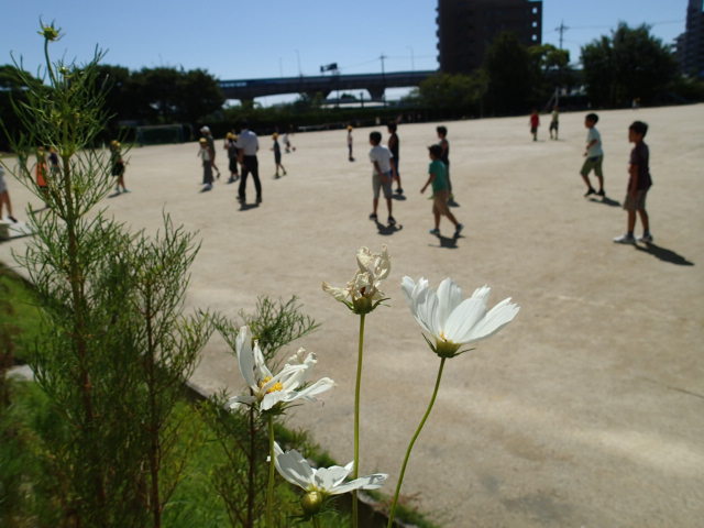 雲一つない青空の下、みんな元気に登校しました。