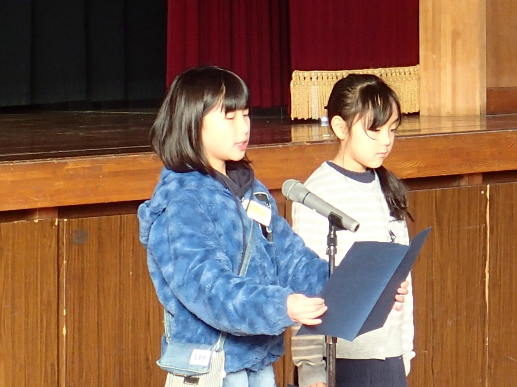 最後は2年生・4年生代表者が、2学期をふり返る作文を発表しました。
