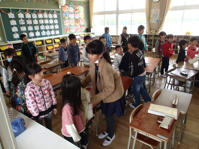 班全員で、班長・副班長の名前や、集合・出発時間、並び方、約束事等を確認しました。みんなで協力し、安全に登下校しましょう。班長さん、副班長さん、よろしくお願いします。