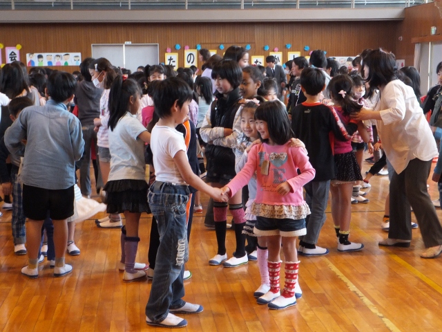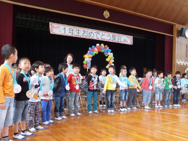 自己紹介をしながらジャンケンをし、列を増やしていく「ジャンケン列車」を楽しんだり、みんなで歌を歌ったりと、楽しい企画が盛りだくさんでした。2年生からは、昨年育てた朝顔からとれた種がプレゼントされ、5年生からは、かわいいペンダントが贈られました。(他の学年の子は、会場の飾り付けをがんばってくれました。) 1年生の笑顔を、うれしそうに見守る上級生の優しいまなざがとても素敵でした。
