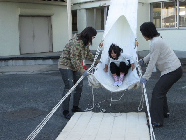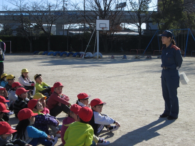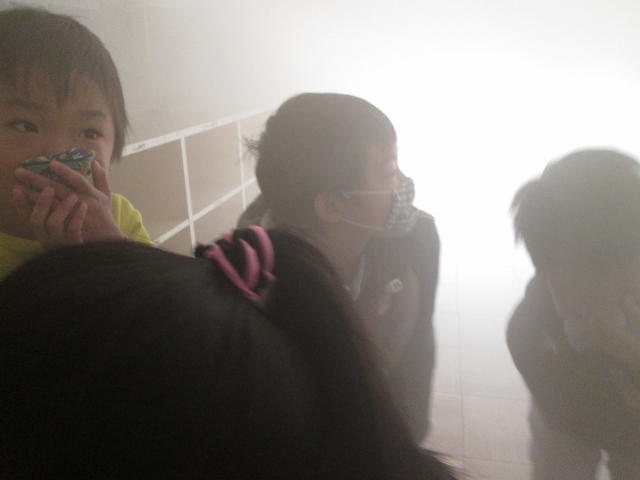空気が乾燥する冬、暖房等で火を使うことも多くなる季節です。この日は、火災を想定しての避難訓練を行いました。4階の家庭科室から出火したと想定しての訓練でしたが、子どもたちは先生の指示をよく聞き、素早く避難してくれました。ただ、消防署の方からは、「ほんの少しだったけど、おしゃべりをしていた子がいた。おやべりは指示が聞けず、安全に避難することができない原因となる。煙を吸い込む原因にもなるので気をつけてほしい」と注意を受けました。火災での死者の多くは、煙を吸い込んだことが原因と言われます。次回の訓練では気をつけたいと思います。その後、煙体験や救助袋を使った避難体験等をし、まさかの時に備えた訓練もしました。
