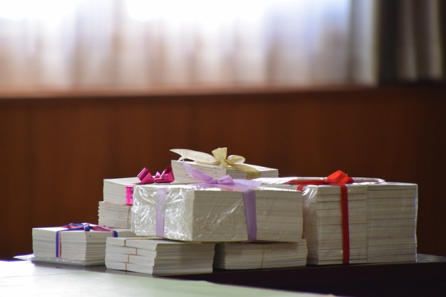 12月14日(木)あま市役所にて、東日本大震災や福島第一原発事故の影響で県内に避難している人を励ますために、市内全小中学校の児童生徒が描いた絵手紙を渡す「贈呈の会」が行われました。