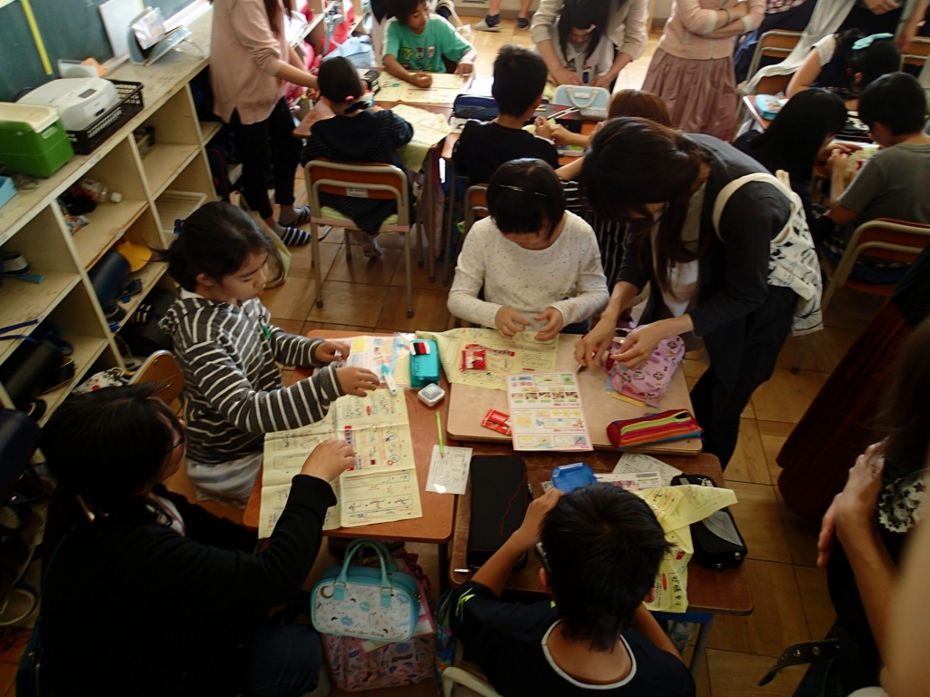 下校は、運動場で「引き取り訓練」が行われ、親子で下校しました。緊急時を想定し、兄弟姉妹がいる子は、一番下の兄弟クラスに移動した後、保護者の方々に引き取っていただきました。