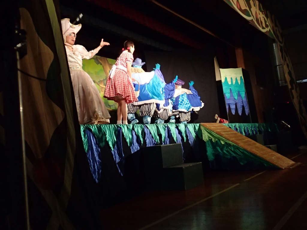 2限目は「観劇会」で、劇「オズと魔法使い」を見ました。間近でプロの迫力ある演技にふれ、,話の世界に引き込まれていきました。