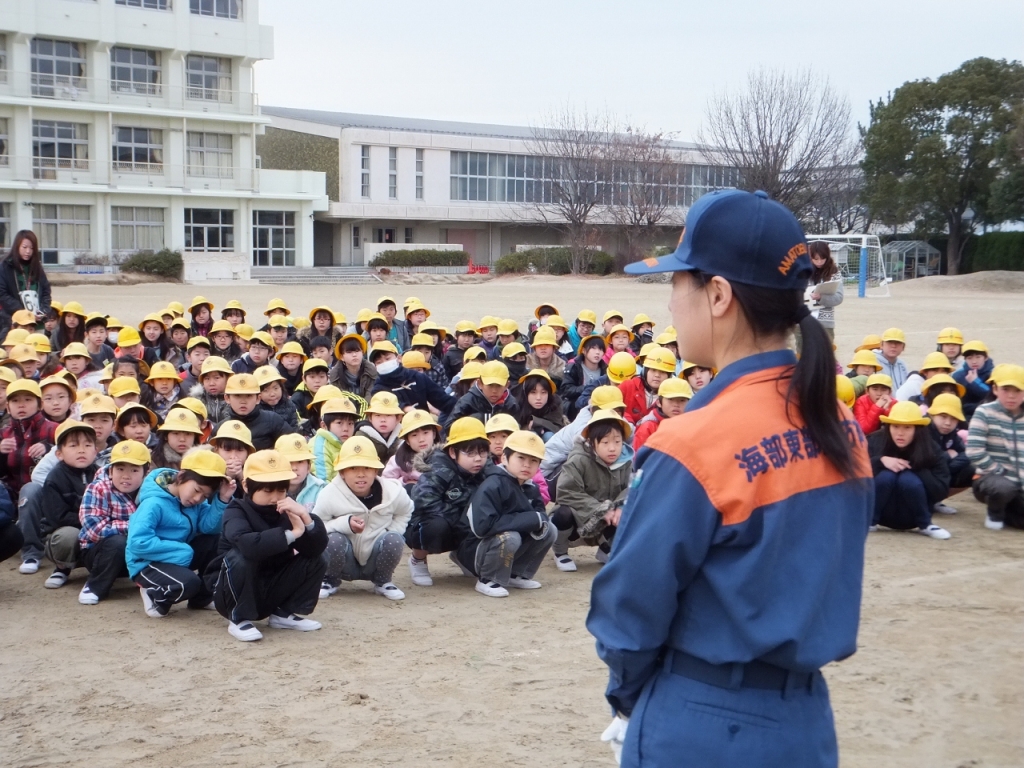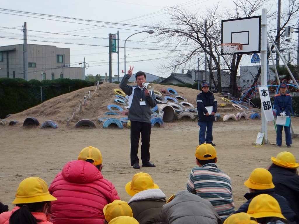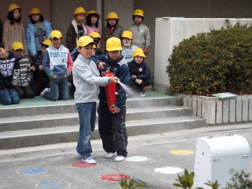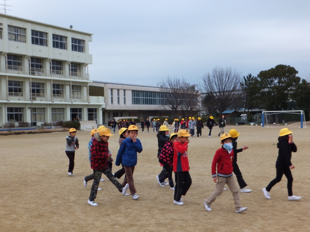 空気が乾燥する上、暖房器具など、火を使うことが多くなるこの時期、火災の発生が心配されます。この日は、4階家庭科室付近から出火したことを想定して、避難訓練を実施しました。避難指示が出て、4分ほどで全校児童が避難を完了することができました。皆、「お・は・し・も」をしっかりと守ってくれ、いざというときも、こういう落ち着いた対応ができたらと思いました。