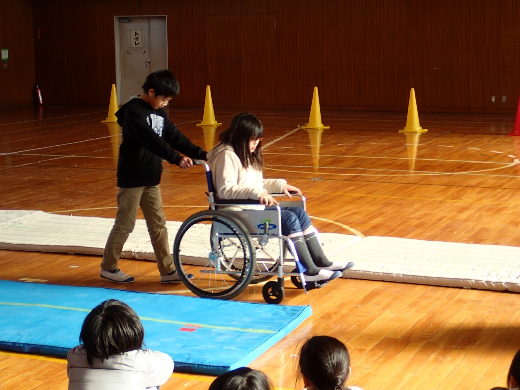 4年生は「手話」、5年生は「車いす」、6年生は「点字」と「疑似老人体験」に分かれて、体験しながら学習しました。