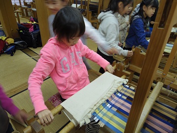 また、竹とんぼ作り、藍染め、機織りを体験しました。