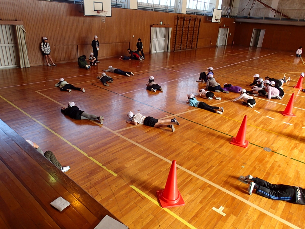 卒業式を前にして、一足先に6年生の修了式を行いました。代表児童が修了証を受け取り、修了式が無事済んだところで、養護教諭から成長の記録のプレゼントがありました。成長の記録カードは、身長が6年間で伸びた分と同じ長さのリボンが結んであり、ほどいてみると、予想以上の長さでびっくり!大きくなったんだね。