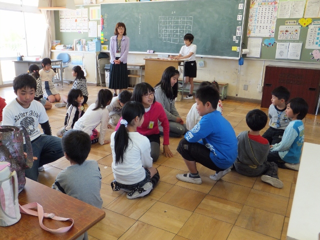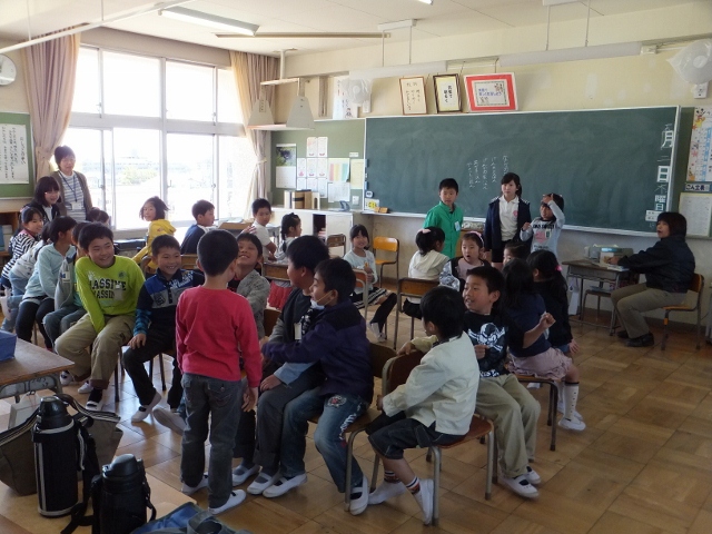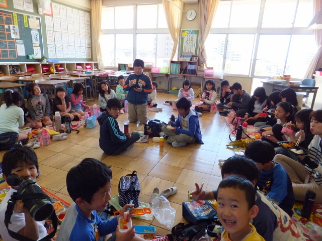 火曜日に紹介されたリーダー・サブリーダーが中心となって準備を進めてきた初めての「わくわくタイム・にこにこランチ」が行われました。4時間目には、わくわく班活動のテーマの確認をしたり、自己紹介を兼ねたゲームを楽しんだりして、ふれあいを深めました。その後は、みんなでお弁当を囲んで、楽しいひとときを過ごしました。会の初めこそ、表情が硬い子もいましたが、徐々に打ち解け合い、お弁当の時間には、どの教室も、笑顔があふれていました。みんなの笑顔を自分の喜と感じ、リーダー・サブリーダーは、この日までの苦労が吹き飛んだようでした。