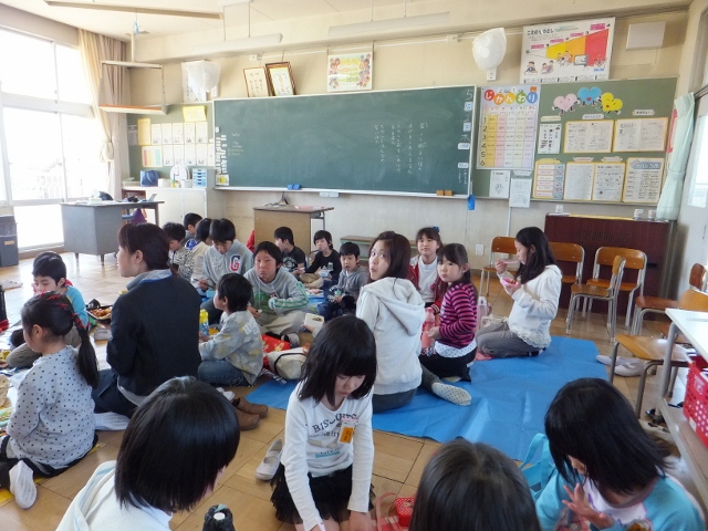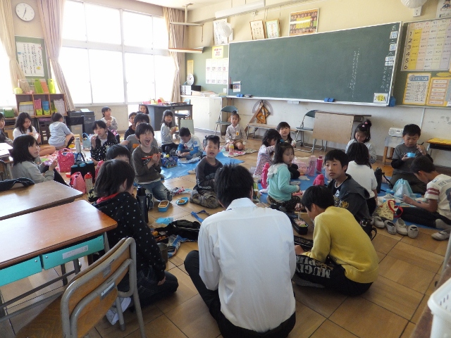 6年生の各教室では、ケーキのじゃんけんで盛り上がるところ、全員で輪になって食べるところ、思い思いに給食の時間を楽しみました。