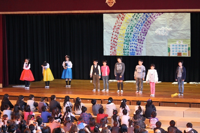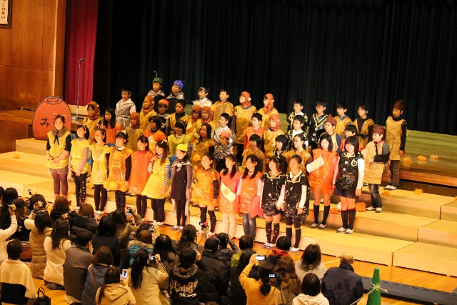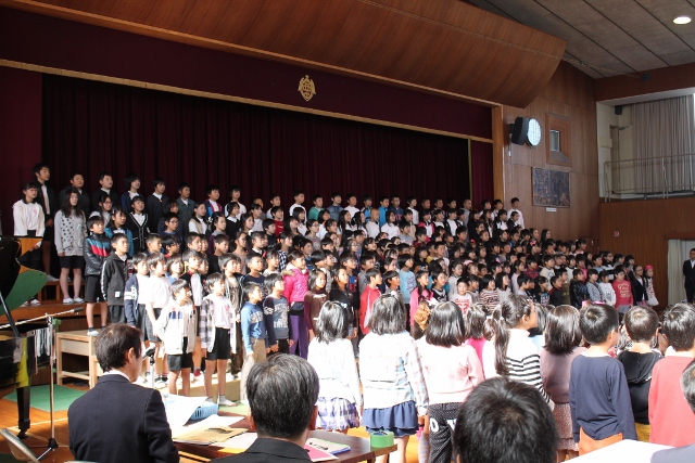 秋の二大イベントのひとつである学習発表会を、大盛況のうちに無事終えることができました。火曜日の総練習で、どの学年も順調な仕上がりを見せていましたが、たくさんの来賓・保護者の方が参観して下さったこの日は、子どもたちの気合いも十分で、最高の演技を見せてくれました。特に全校合唱の出来映えはこれまでにないもので、来賓の方々からは、「素晴らしくて涙が出そうだった」とのお言葉もいただきました。