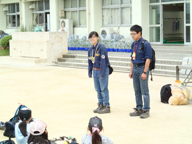 出発式では校長先生より、「きまりを守り、正しい判断をして活動しよう」、学年主任の今田先生からは、「広い心で、支え合って活動しよう」との話がありました。