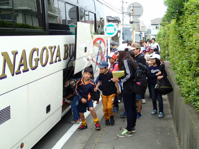 62名は笑顔でバスに乗り込み、保護者の方に見送られて出発しました。