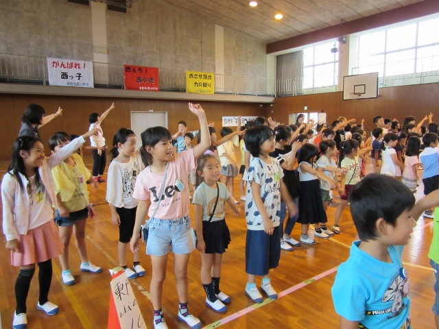 児童会役員の指示に従って、学年を超えて手をつないだり、挨拶をしたりと、全校で和やかな時間を過ごすことができました。