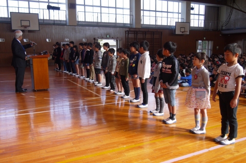 令和6年度修了式。1年生から5年生までの児童が該当学年過程を修了しました。この1年で多くのことを学び、自信をもって次の学年に進級できます。4月に笑顔で皆さんと会えるのを心待ちにしています!