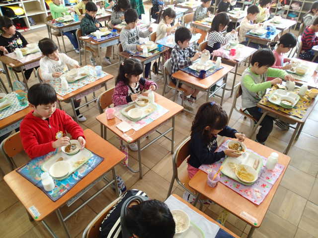 今年度最後の給食です。デザートにプリンもついて今日もおいしくいただきました。給食センターの調理員の皆さん、学校まで届けてくださった皆さん、校内のコンテナ、ワゴンを準備、片付けしてくださった配膳員の皆さんのおかげです。ごちそうさまでした!!