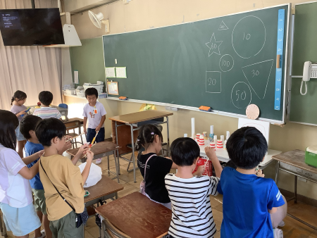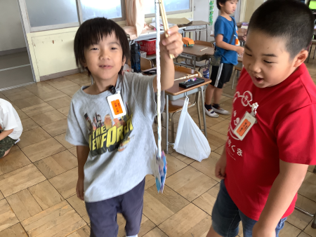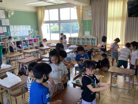 生活科の「せかいでひとつ わたしのおもちゃ」という授業で、自分の作りたいおもちゃを選んで作りました。そして、作ったおもちゃで、クラスのみんなと一緒に楽しく遊びました。