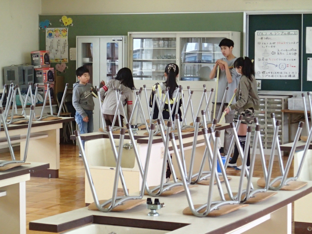 明日は卒業式。5年生児童が会場準備、環境整備に力を発揮しました。これで準備はばっちりです。すてきな卒業式になりそうです!
