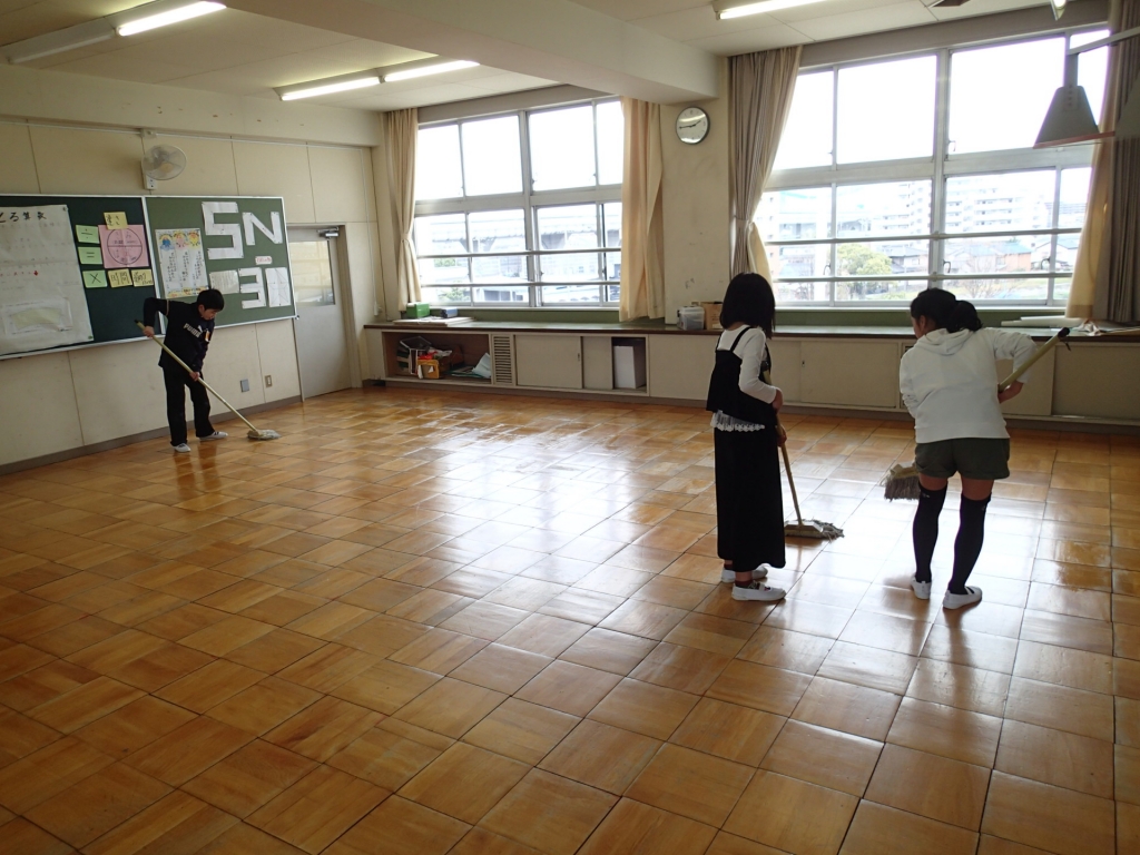 6年生が、卒業を前に学校のためにできることに取り組みました。特別教室の床のワックスがけ、運動場の側溝の整備など手際よく作業していました。とてもきれいな仕上がりで、6年生がとてもいい表情をしていました。お世話になった学校に恩返しができましたね!ありがとう!!