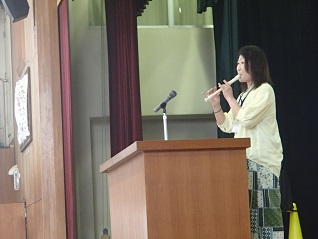 先生のリコーダー演奏をにこにこ聴いていた子どもたち。自然にわき上がる手拍子や拍手に、温かい気持ちになりました。