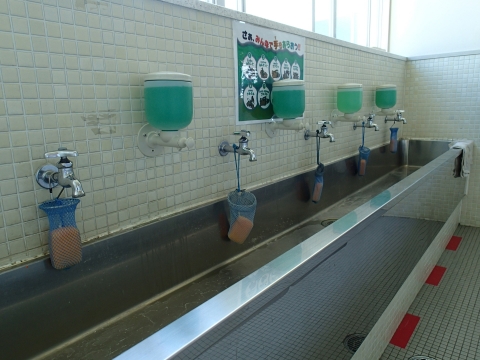 この度、市にお願いして、校舎の4階に液体石けんのタンクを設置していただきました。