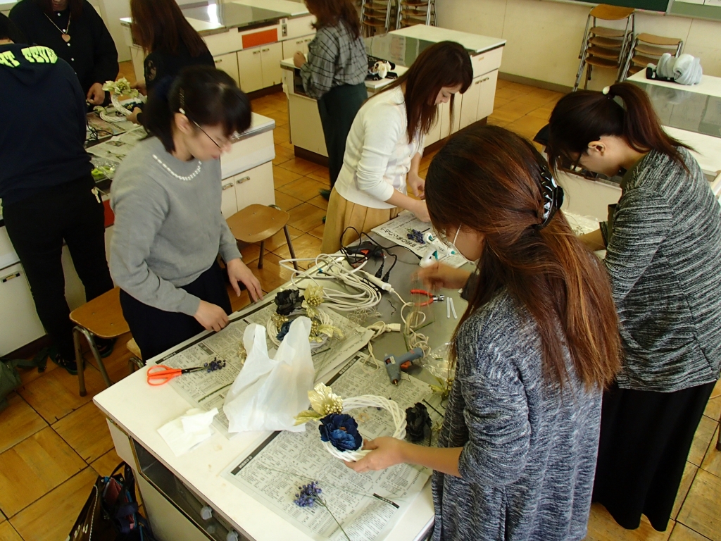 和やかな雰囲気の中、家庭で飾ることをイメージしながら制作しました。