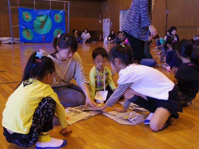大人も盛り上がるドッチビー                    親子工作コーナー