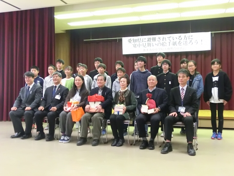 あま市内全小中学校の児童生徒が、寒中見舞いとして描いた絵手紙を、愛知県に避難されている方々に贈りました。
