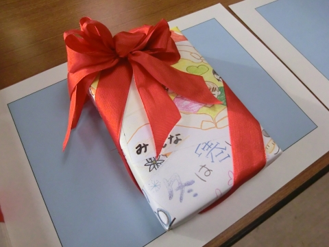 卒業式を前にして、一足先に6年生の修了式を行いました。代表児童が修了証を受け取り、修了式が無事済んだところで、養護教諭から成長の記録のプレゼントがありました。成長の記録カードは、身長が6年間で伸びた分と同じ長さのリボンが結んであり、ほどいてみると、予想以上の長さでびっくり!大きくなったんだね。