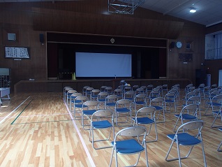 体育館の準備をしてくれたのは6年生。あっという間にイスや長机が並び、会場が整いました。