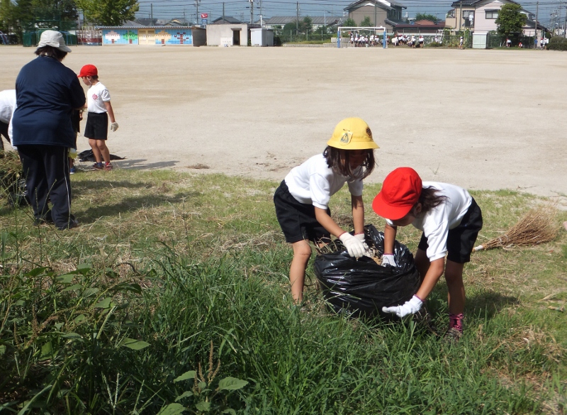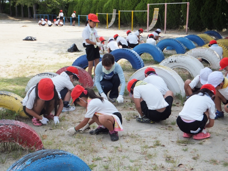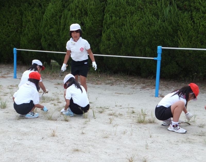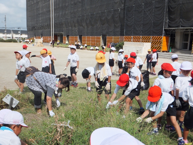 全校で草取り~保護者の協力を得て~