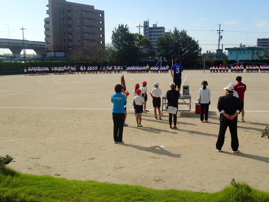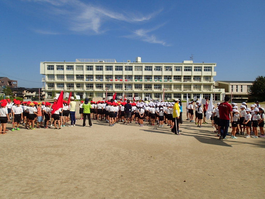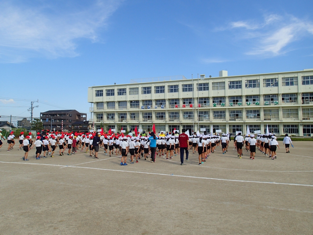 9月19日(火)台風が過ぎ去り、青空の下で全校練習をすることができました。