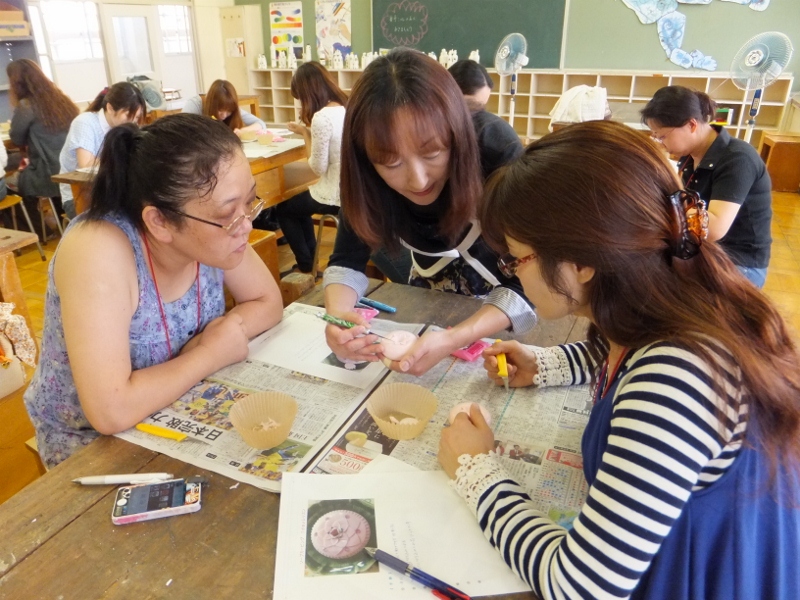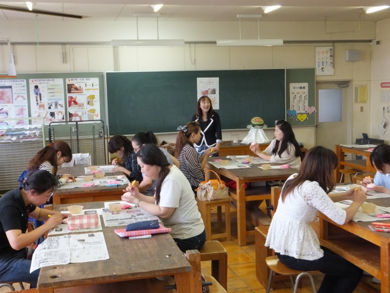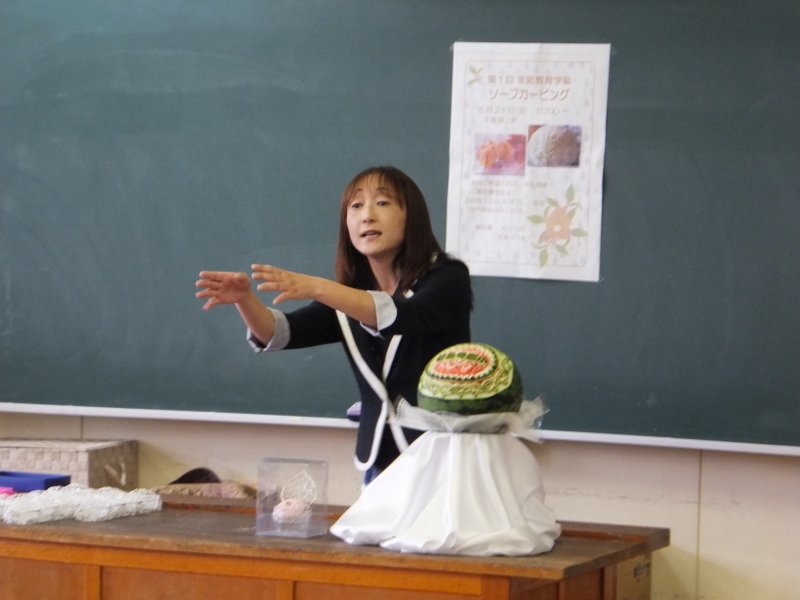 この日は、 アトリエ・NAGARAの神山路生先生を講師にお招きし、PTAの皆さんが、「ソープカービング」にチャレンジしました。最初は、参加されたお母さん方は、おっかなびっくりな様子でしたが、神山先生の適切な指導のもと、徐々に自信をもって掘り進めてることができました。皆、素晴らしい作品ができあがり、美と香りの素敵なお土産をもって、笑顔で家路につかれました。