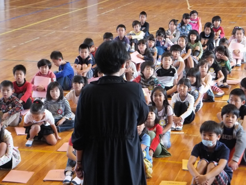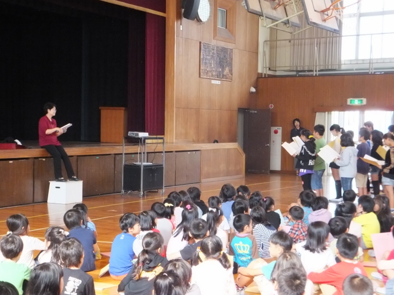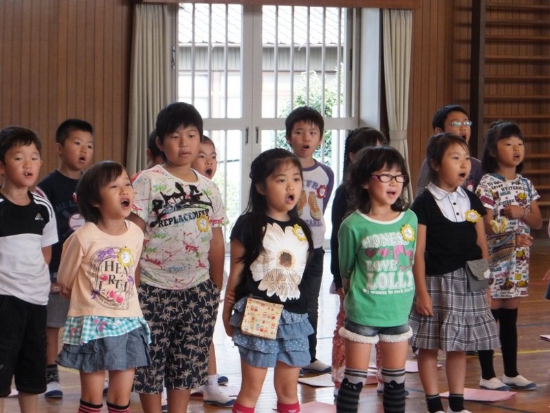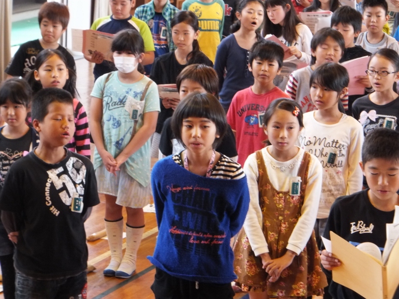 学習発表会の『名物』となってきた全校合唱に向け、今年も、外部より専門化を招き、合唱指導をしていただいています。お招きしたのは、長年、海部地区の小中学校で教鞭を執ってみえた先生で、子どもたちは、すぐに持っている力を引き出され、素敵な歌声が体育館に響き始めました。1ヶ月後に迫った学習発表会が楽しみです。