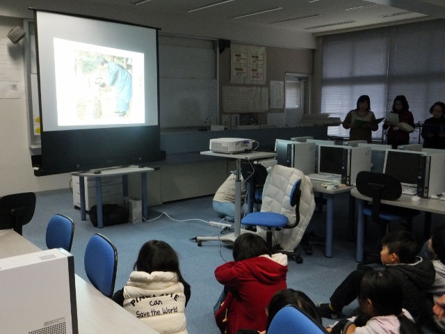 恒例の図書ボランティアによる特別イベントが行われました。この日は、6年生が対象で、コンピュータ室にスライドを映しながら、『お正月』について、いろいろなことを教えてもらいました。