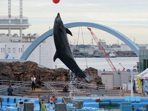 イルカショーでは、迫力あるジャンプや統率のとれたイルカ達の演技に大きな歓声が上がりました。