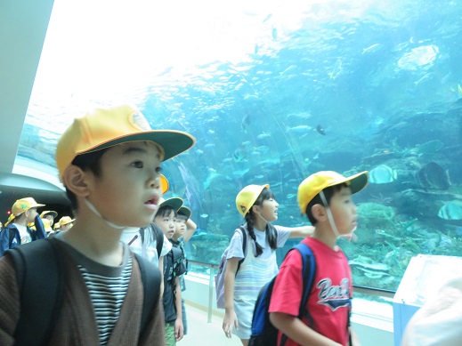 悪天候が心配されましたが、雨に降られることもなく名古屋港水族館に行くことができました。何度か行ったことがある、という児童もいましたが、小学校でできた仲間や友達との校外学習はまた一味違い、楽しく学べたようです。