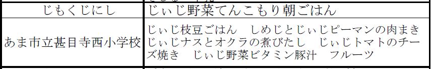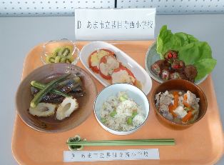 愛知県では、地元の食材や郷土料理を取り入れながら、家族で美味しく食べる「愛であ朝ごはん」の献立づくりや調理などを通して、親子で望ましい食生活について一緒に話し合ったり、家族の絆を深め合ったりすることを目指して毎年開催しています。県下304校から8,721点の応募があり、入選献立を考えた10名の小学生本人が、11月22日(日)に、愛知みずほ短期大学で調理をし、朝食のできばえを競いました。なんと本校の6年生女子児童が、『最優秀賞』に輝きました。この日の朝礼で、校長先生から”快挙”を披露され、伝達表彰を受けました。
