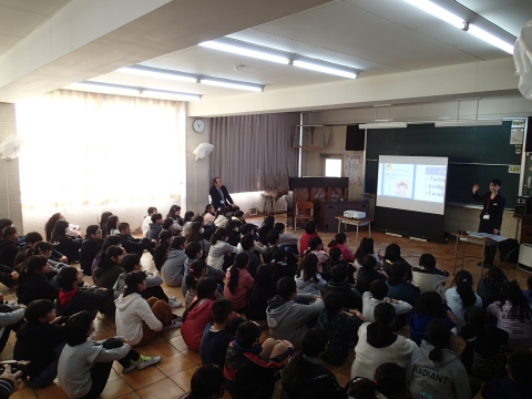 2月7日(金)「スマホケータイ安全教室」が行われ、5・6年生約100名参加しました。